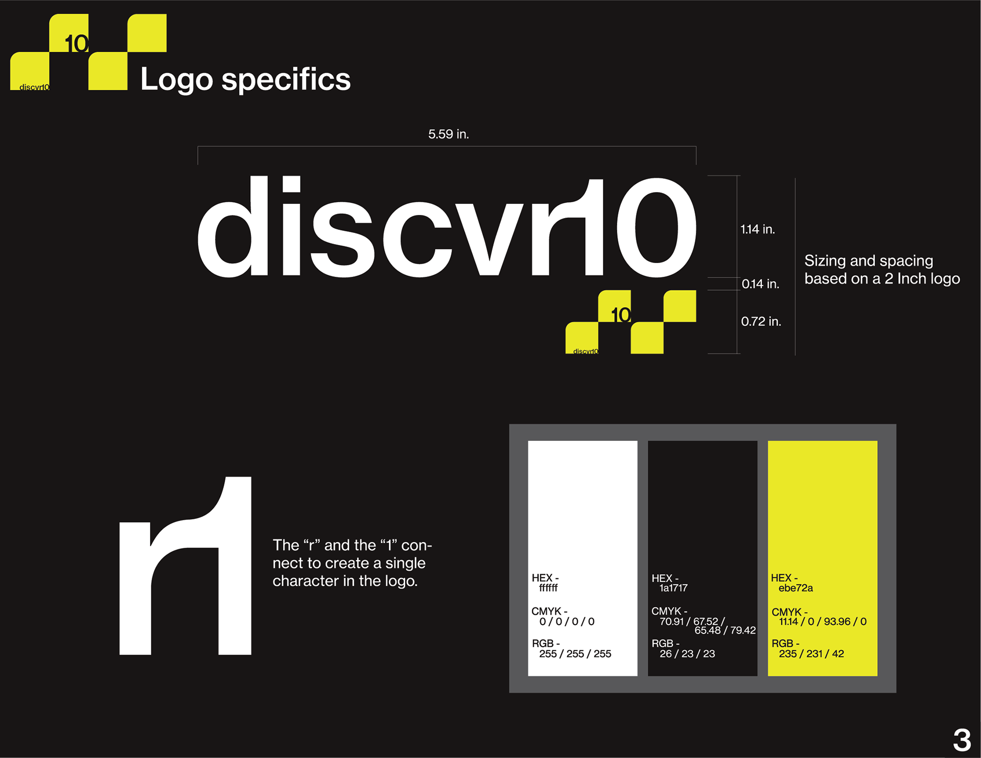 The brand identity manual gives insight into what discvr10 is all about.